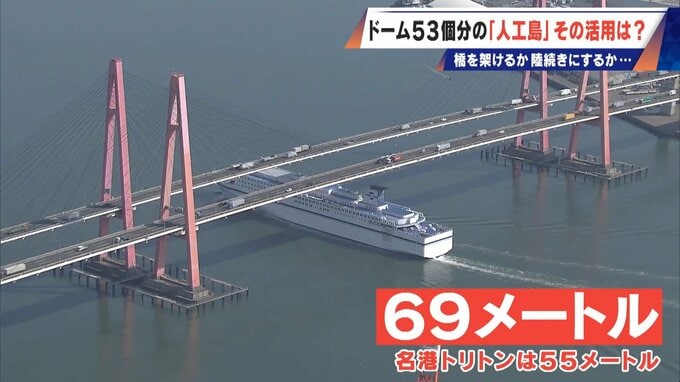 橋やトンネルなどの交通アクセスを作るには、少なくとも20~30年はかかる見通し。島の北側、飛島ふ頭との間を埋め立て、陸続きにするアイデアもありますが、これだと今ある航路を遮る影響が出てきます。