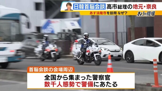 会談を行なう奈良市内のホテル周辺では、奈良県警をはじめとする全国から集まった警察官が数千人態勢で警備にあたっています。