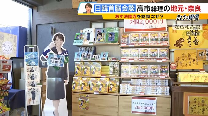 一方、出迎える高市総理は12日、奈良へ総理就任後、初めてのお国入り。依然、高い支持率の高市総理は地元のみやげもの店でも、「さなえちゃん紅白まんじゅう」や「写真入りアクリルスタンド」など関連グッズがずらりと並んでいます。