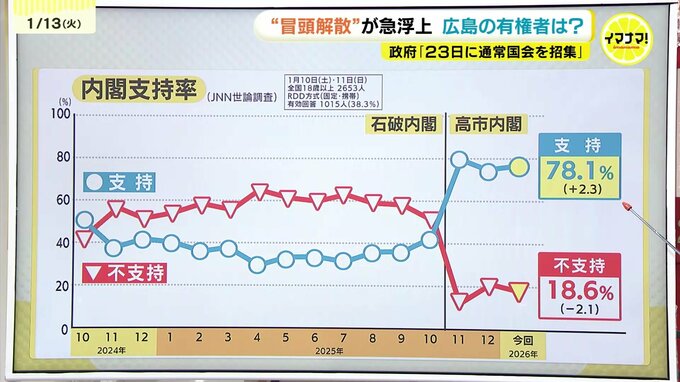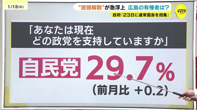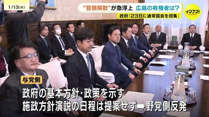政府が今月23日に通常国会を招集すると衆参両院に伝えましたが、その冒頭で高市総理が衆議院を解散するとの見方が急浮上しています。広島ではどのように受け止められているのでしょうか?