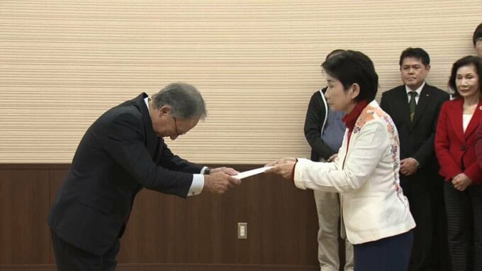 今年秋に実施される予定の県知事選挙に向け、「オール沖縄」勢力は13日午後、玉城知事に3期目の出馬を要請しました。