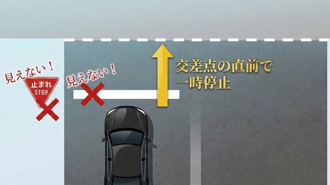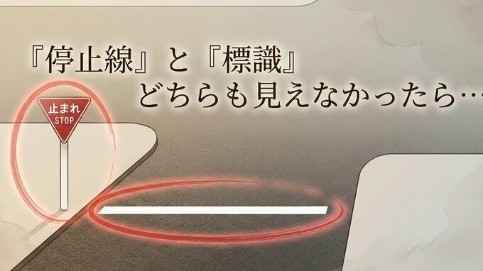 「停止線」に加え「標識」も見えなかったら…?違反になる?停止しなきゃいけないとしたら、停止位置はどこになるのでしょうか??
