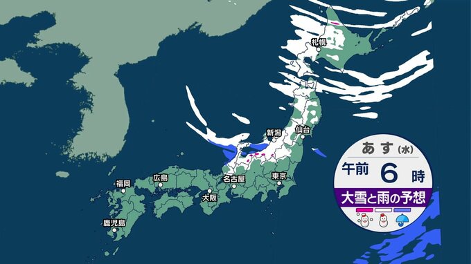 きょうは南風が強く吹いて、3月並みの気温になった所が多くなりました。ただ、こんやから再び強い寒気が流れ込み、北陸や北日本の日本海側では大雪や吹雪になるおそれがあります。あすは、北海道付近にある低気圧…