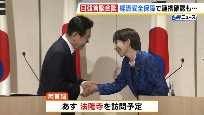 奈良市内で行われている日韓首脳会談。両国の連携強化が重要だとする認識で一致しました。 首脳会談の会場となる奈良市内のホテル。その向かいに建つ奈良市役所の屋上には、「歓迎 李在明大統領」と書かれた垂れ…