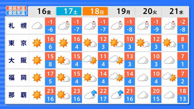 沖縄地方…-2.2℃以下