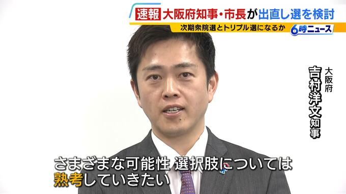 大阪府の吉村知事と大阪市の横山市長は、いわゆる「大阪都構想」の実現に向け、それぞれが辞職し、衆院選に合わせて出直しダブル選挙に臨むことを検討していることが分かりました。 大阪府の吉村知事は、政権が掲…