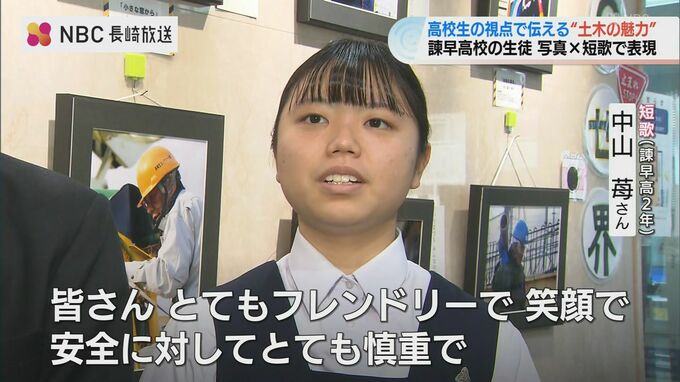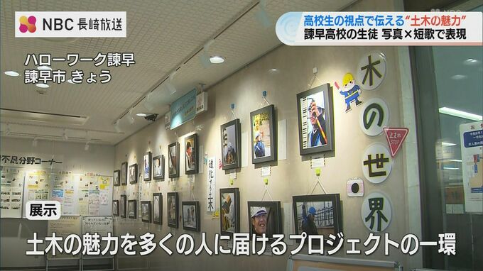 長崎県諫早高校の生徒が、写真や短歌などを通じて「土木の仕事」の魅力を伝える展示会が、13日から始まりました。「土木の仕事」を将来なりたい職業ナンバーワンにすることを目指しています。