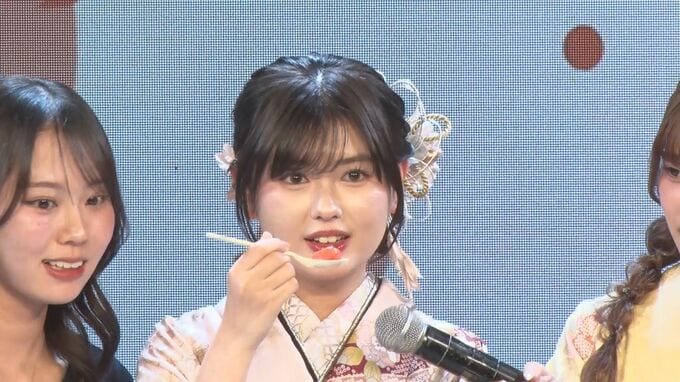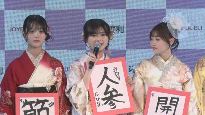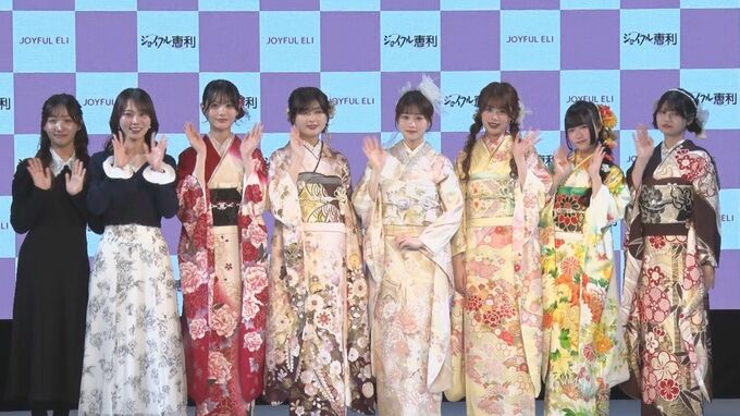 第8期「振袖 TEENS supported by ジョイフル恵利」お披露目イベントが行われ、メンバーの古園井寧々さん、瀬川陽菜乃さん、藤田みあさん、長浜広奈さん、矢野滴さん、川島梨々花さんが登場しました。