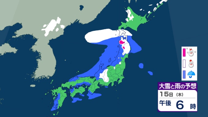長期化: 15日(木)も新たな低気圧の通過により、北〜西日本の広範囲で強風や雪、高波が続く予想です。