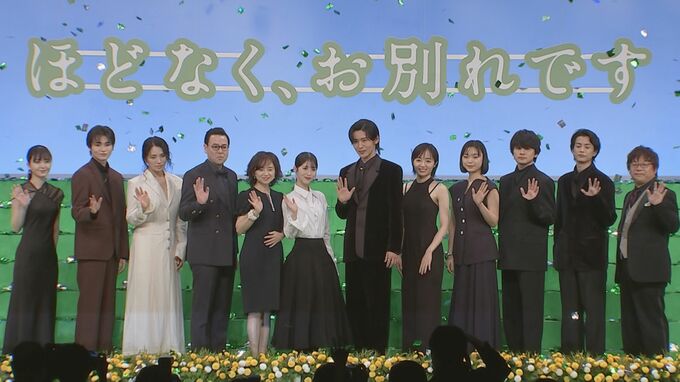 俳優の浜辺美波さん、目黒蓮さん、森田望智さん、古川琴音さん、北村匠海さん、渡邊圭祐さん、野波麻帆さん、西垣巧さん、久保史緒里さん、鈴木浩介さん、永作博美さん、三木孝浩監督が、東京・豊洲PITで行われた映画「ほどなく、お別れです」完成披露舞台挨拶に登壇しました。