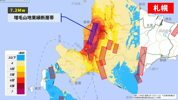 (※2)各都市と断層の紐づけは、あいテレビが独自に行ったもので、必ずしも近傍でないものもあります。J-SHISシミュレーション画像をご覧頂くなど、実際の予測も合わせてご覧ください。