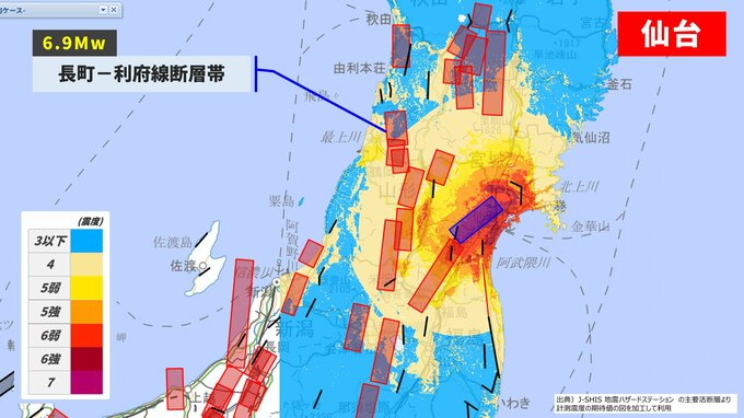 (※1)長期評価による想定規模と、J-SHISシミュレーションは、それぞれ想定に違いがある場合がありますので、ご注意ください。