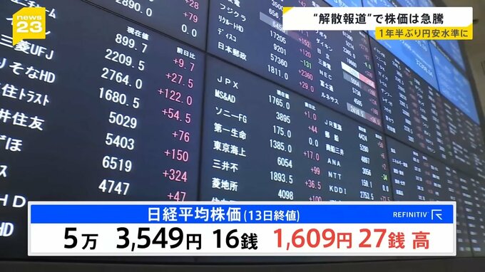 日経平均株価 5万3000円台に “解散報道”で進む円安