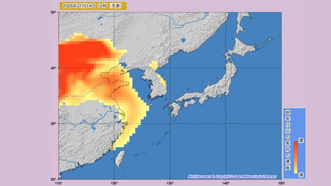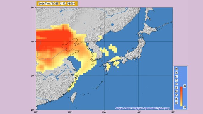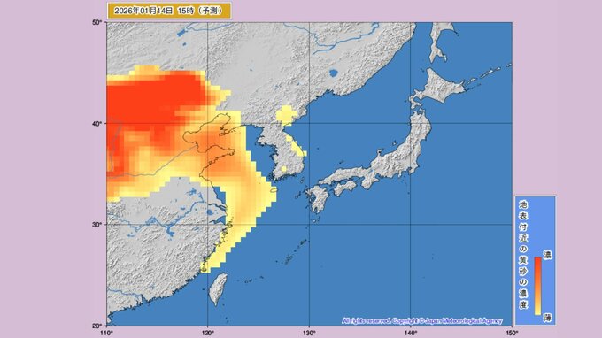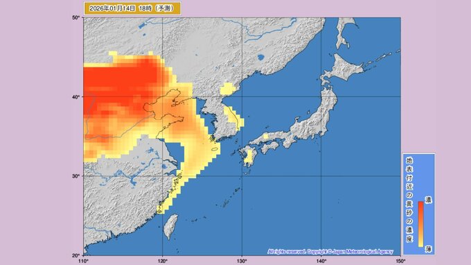 1月14日ごろから再び、日本各地に中国大陸からの黄砂が飛来すると予測されています。