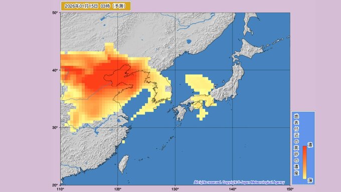 【黄砂情報】大陸からの黄砂 14日から17日にかけ日本各地に飛来の予想 気象庁