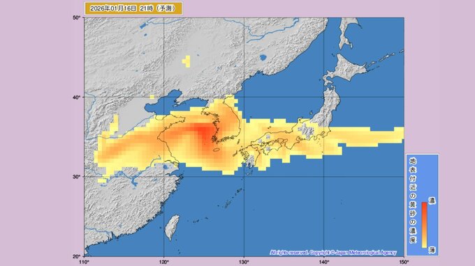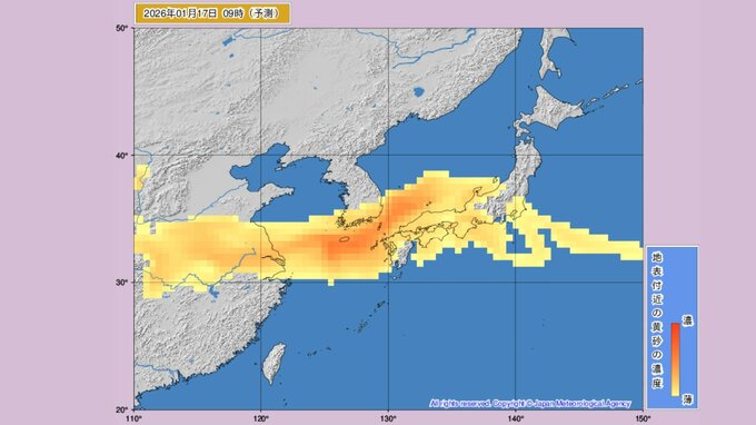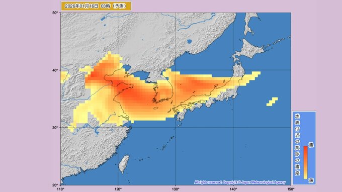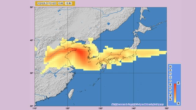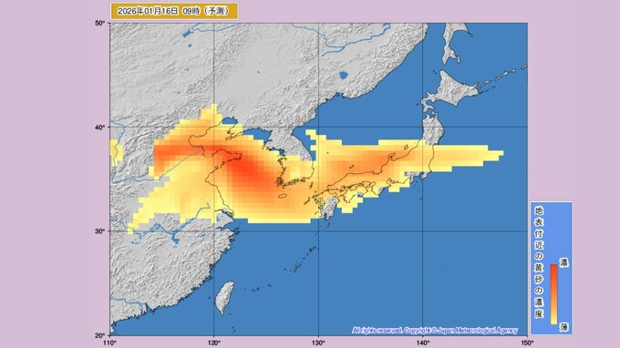 黄砂現象とは、東アジアの砂漠域(ゴビ砂漠、タクラマカン砂漠など)や黄土地帯から強風により吹き上げられた多量の砂じん(砂やちり)が、上空の風によって運ばれ、浮遊しつつ降下する現象を指します。