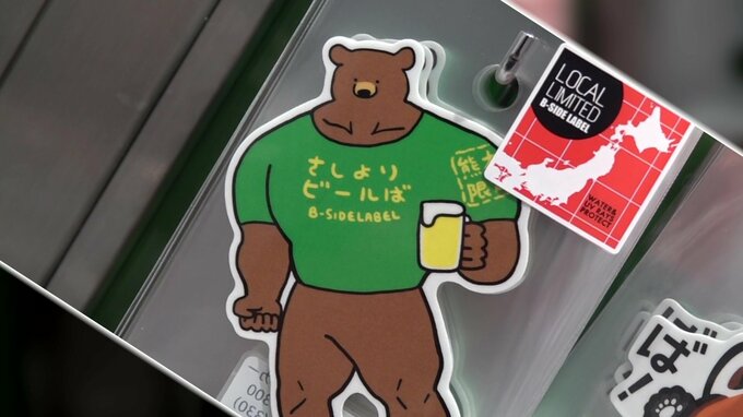 一押しはムキムキのクマがビールを持った「さしよりビールば」ステッカー。