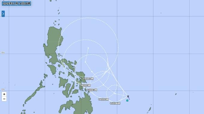 気象庁は台風に発達後、フィリピンの東を北上する見込みを示しています。今後の進路に注意してください。