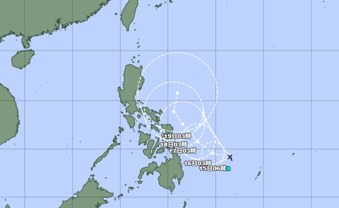 予報円の中心 北緯15度50分 (15.8度)