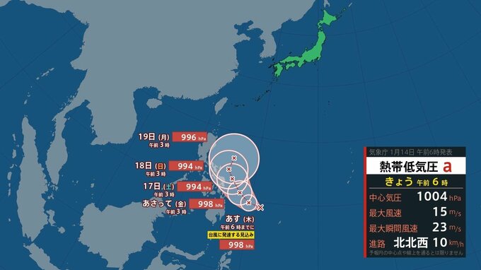▼1月に熱帯低気圧発生 15日には台風に発達か