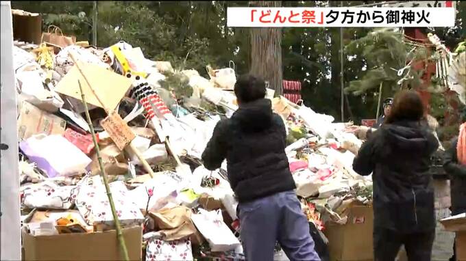 無病息災や家内安全を祈る小正月の伝統行事、どんと祭が14日に行われるのを前に神社には、正月飾りを持った参拝者が訪れています。