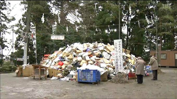 仙台市青葉区の大崎八幡宮でも、午前中、しめ飾りや破魔矢など正月飾りを持った参拝者の姿が見られました。