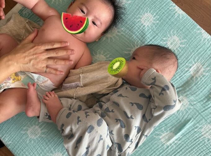 また、双子の成長について「コロンコロンしはじめました。もうすぐ寝返りしそう」と報告。さらに子育てを通して知った社会的支援として「こどもの医療費が無料って衝撃でした」と驚きを表現し、「社会の助けに驚いています。知らなかったことがいっぱい!」と述べています。