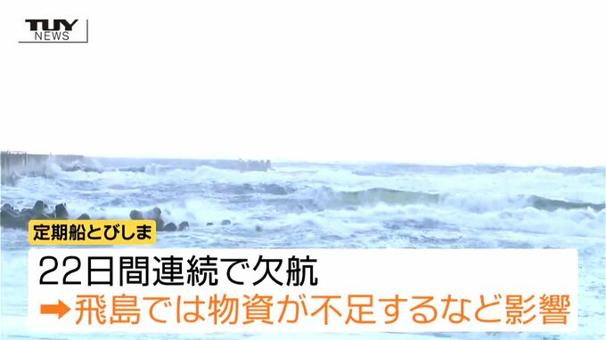 定期船はきょうを含め年末から22日間連続で欠航していて飛島では物資が不足するなど影響が続いています。