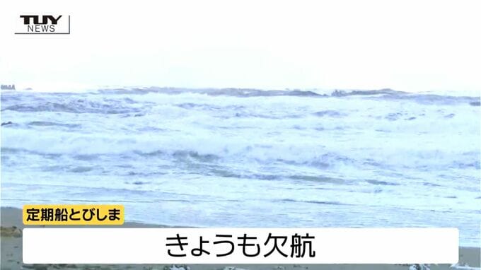 この影響で飛島に向かう定期船とびしまはきょうも欠航となりました。