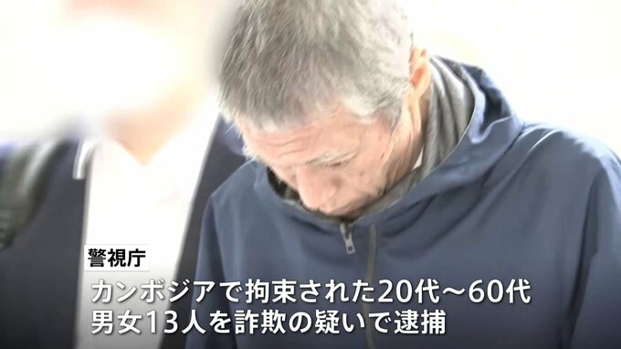 カンボジアにある特殊詐欺の拠点で去年11月、現地当局に拘束された日本人の男女13人が日本に移送され、警視庁に逮捕されました。記者「カンボジアで拘束された男女が成田空港に到着しました」詐欺の疑いで逮捕され…