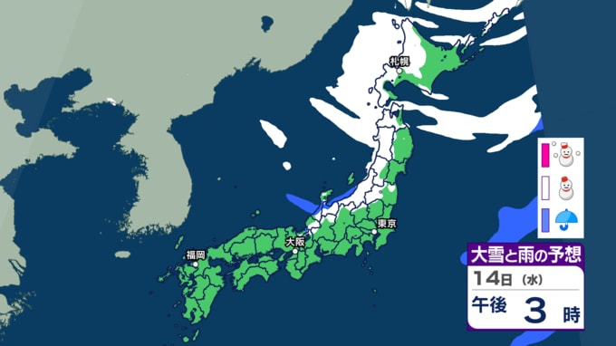 北日本と北陸は暴風雪に警戒 15日は広範囲で大気不安定に