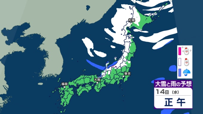 14日は、北日本と北陸地方で雪を伴った非常に強い風が吹き、海は大しけとなるでしょう。