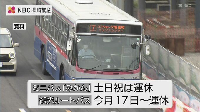 また、上横尾ー長与線のミニバス「みかん」の土日祝日は運休、観光ルートバスについても今月17日から運休します。