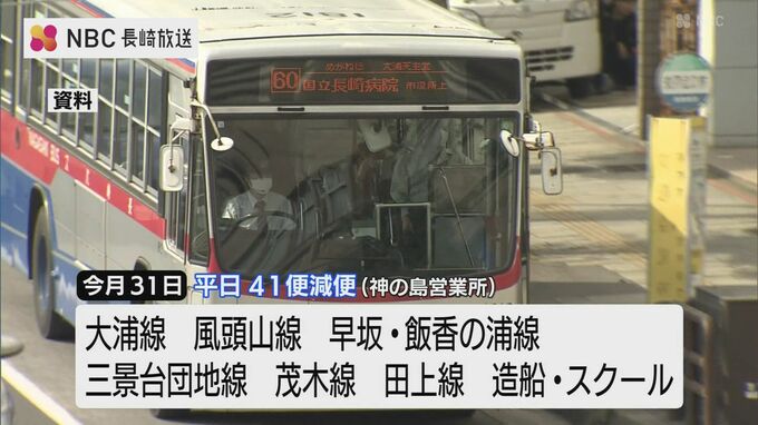 長崎バスを運行する長崎自動車は、運転手不足のため、今月末から路線バスなどを減便すると発表しました。
