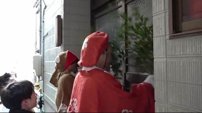 夫婦の神様に扮した子供たちが家々をまわり、今年1年の厄を払う、石川県輪島市の伝統神事「面様年頭」が14日、行われました。