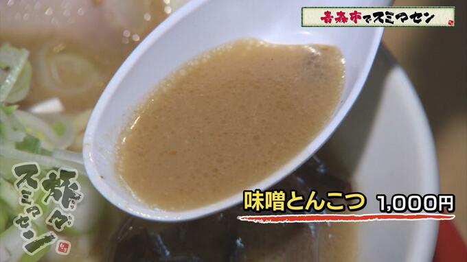 八郎さんが注文したのは【味噌とんこつ】(1000円)。理想の味を求めて、店主自ら県内のあらゆる味噌を試した末に完成させたというこだわりの一杯です。
