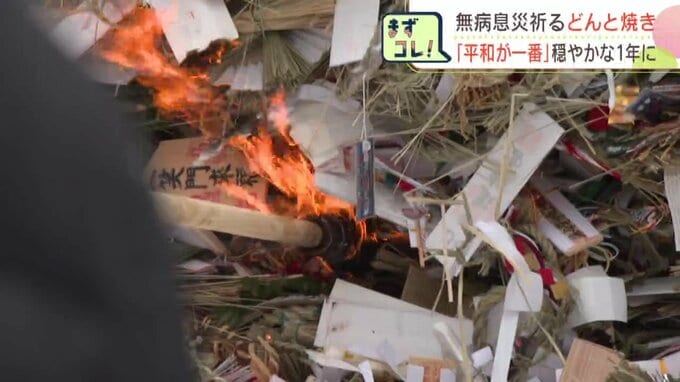 燃え上がる炎を前に、今年1年の無病息災を祈ります。札幌市の北海道神宮では正月飾りなどを焼く「どんと焼き」が行われました。