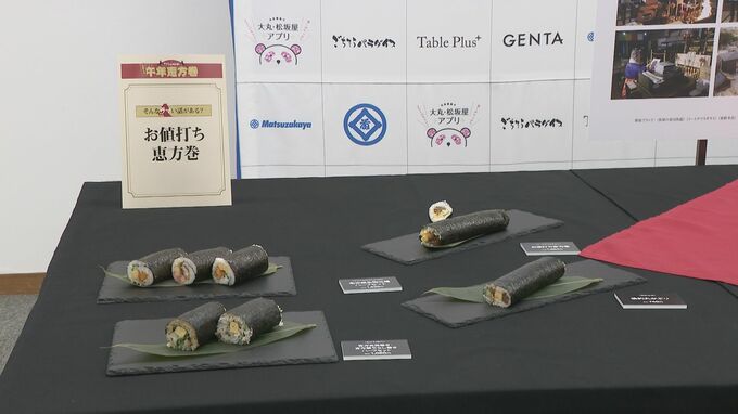 松坂屋によりますと、お値打ち食材の使用に加え、女性や子どもでも食べきりやすいハーフカットでの販売を増やすことで、今年の恵方巻の平均価格は、去年より30円ほど下がったということです。