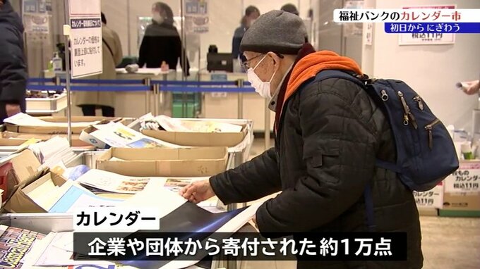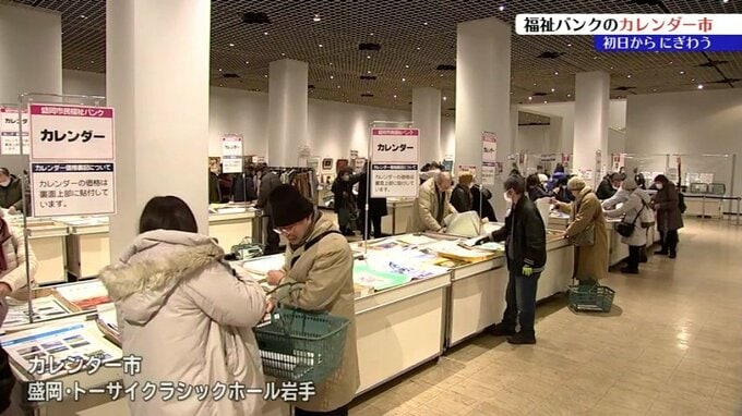 盛岡市のトーサイクラシックホール岩手で14日始まったカレンダー市は、障がい者の就労支援を行う盛岡市民福祉バンクが、1989年から毎年この時期に行っているものです。