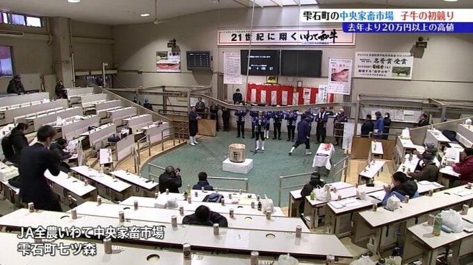 岩手県雫石町の市場で子牛の初競りが行われ、2025年より20万円以上高値で取り引きされていました。