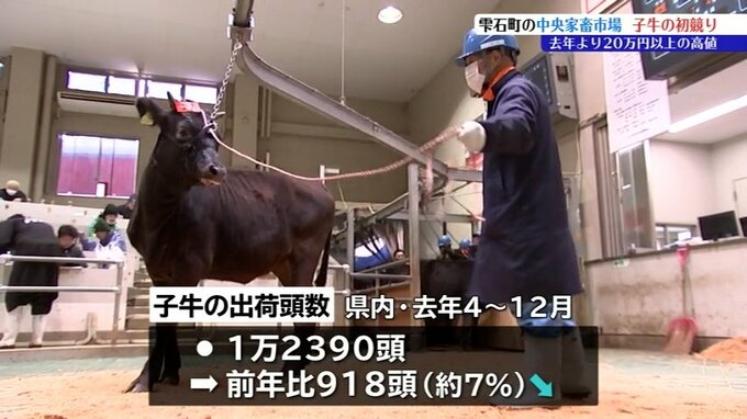 2026年4月から12月の間に県内の市場に出荷された子牛は12390頭と、前の年より918頭、およそ7%も減少しました。