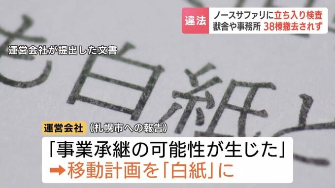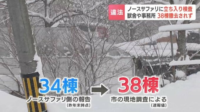 2025年末、ノースサファリ側は札幌市に対し、34棟の建築物が残っていると報告していましたが、14日の現地調査では、報告より4棟多い38棟が残っていたことが分かりました。