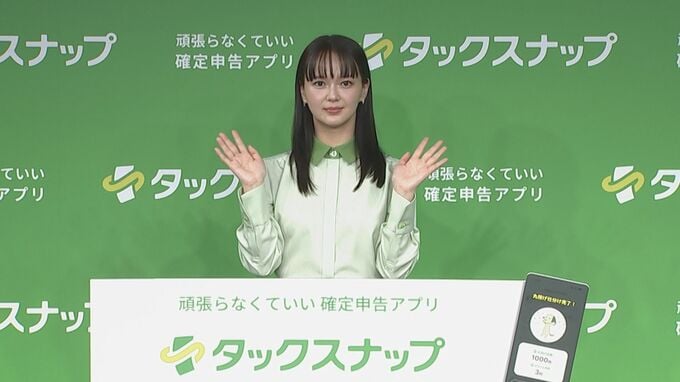 俳優の多部未華子さんが、「タックスナップ新CM発表会」に登壇しました。「タックスナップ」は「頑張らなくていい確定申告」をコンセプトにした個人事業主・副業者向けのスマホアプリで、日々の仕分けから申告書の作成・提出まで、確定申告に必要な作業を完結できるアプリです。