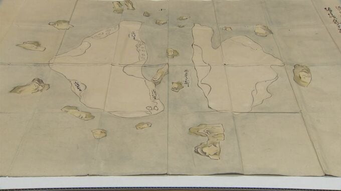 「第一級史料」として公開されたのは、江戸時代中期1700年前後に米子市の商家・村川家によって描かれたとされる竹島の詳細な絵図です。