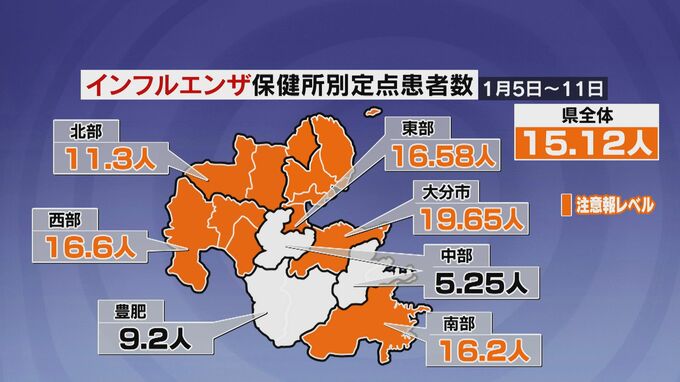 大分県内のインフルエンザの患者数は4週連続で減少していますが、警報は継続していて注意が必要です。