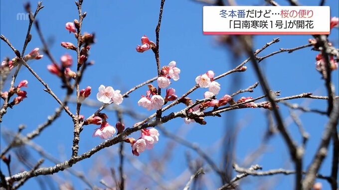 冬本番のこの時期に桜の便りが届いています。宮崎県日南市北郷町で、寒い時期に咲く桜として知られる「日南寒咲1号」が咲き始めました。JR北郷駅の線路沿いに植えられている「日南寒咲1号」。現在、20本ほどある木…