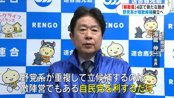 (連合鹿児島・海蔵伸一会長)「野党系が重複して立候補するのは、敵陣営でもある自民党を利するだけ。調整ができるかできないか、胸襟開いて5者会議で議論してきたが、政党の方針もあるだろうし、決意も固い」