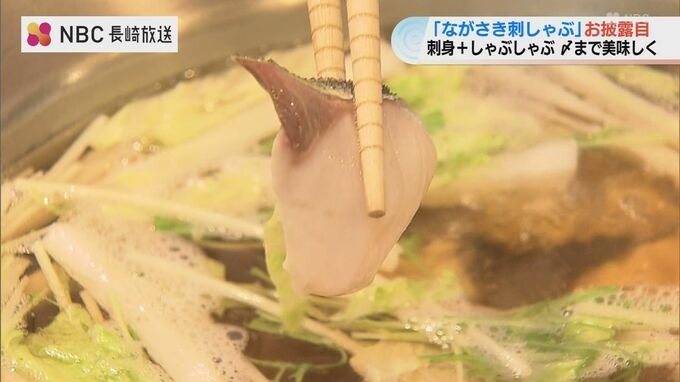 長崎で獲れた魚の魅力を発信しようと、長崎市内の飲食店などが開発した刺身としゃぶしゃぶを組み合わせた新メニュー「ながさき刺(さし)しゃぶ」が14日、関係者にお披露目されました。