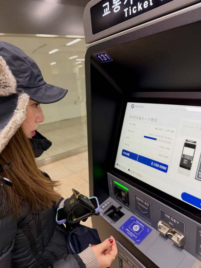 しかし、道中ではハプニングも。韓国の地下鉄の券売機の前で固まった様子の画像とともに、「せっかくなので地下鉄に乗ってみたいと思って地図を見ながら得意げに駅まで来たものの、なんと日本のクレジットカードが使えずウォンも持ち合わせてなかったので乗れず」と、決済手段の確認不足により切符が買えなかったことを吐露しました。