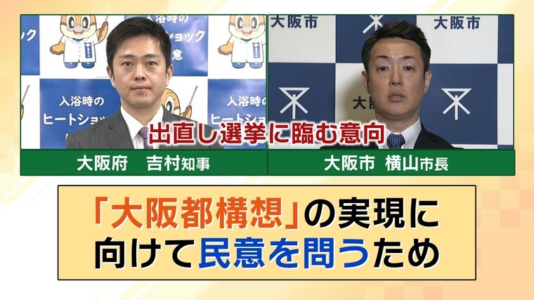突如浮上した、大阪の吉村知事・横山市長の「出直しダブル選挙」。維新の関係者によりますと、2人は2月にも実施の可能性が浮上している衆院選にあわせて辞職し、出直し選挙に臨む意向を固めたということです。